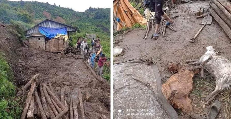 गोठ पुरिएको छ भने संगैको घर जोखिममा परेको छ।