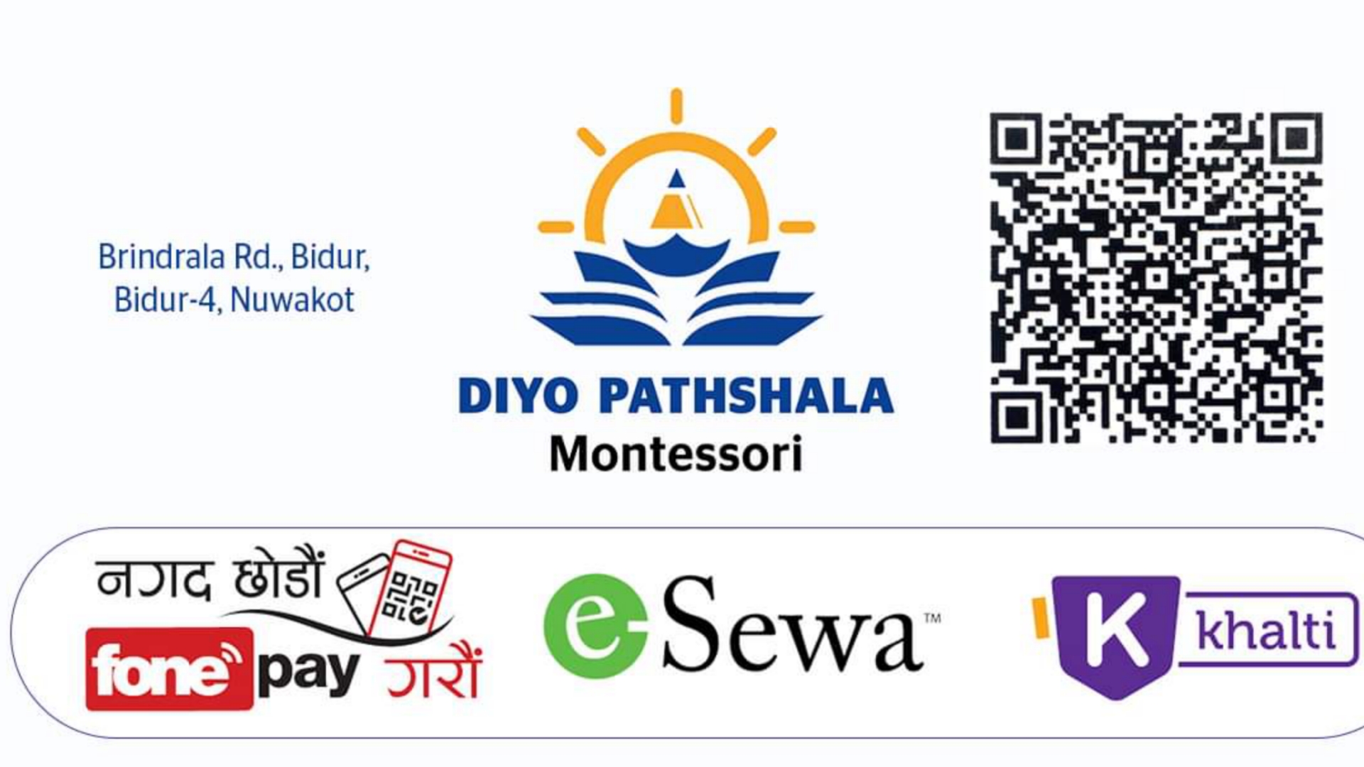 नुवाकोट,साउन २३ । विदुर नगरपालिका विदुरमा रहेको दियो पाठशाला मन्टेश्वरीको शुल्क भुक्तानी फोनपे र ई-सेवाबाट गर्न सकिने भएको छ। अनलाइन शुल्क भुक्तानीको सेवा सुरू भएसँगै अब अभिभावकले घरबाटै आफ्ना नानीबाबुहरूको स्कुलको शुल्क भुक्तान गर्न सक्नेछन् ।