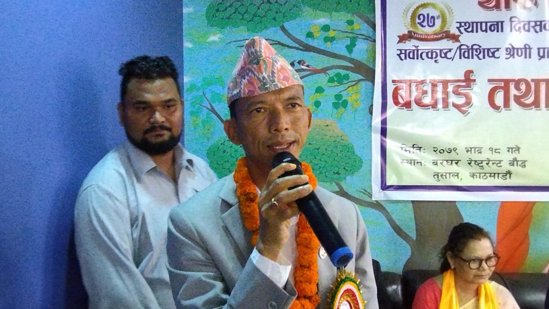 बौद्धस्थित बरघर रेष्टुरेन्टमा शनिवार आयोजित एसइईमा उत्कृष्ट अंक ल्याउन सफल थारु विद्यार्थीहरुको बधाई तथा सम्मान कार्यक्रममा मन्त्री चौधरीले भने, ‘हामीले जहिले दुःखका कुरा ग¥यौँ । अभावका कुरा ग¥यौँ । जाँड खाएर आफु बिग्रिएका कुरा ग¥र्याैँ । के बाहुनले अभाव झेलेका छैनन् ? के क्षेत्रीले दुःख खेपेका छैनन् ? के जाँड अरुले खाँदैनन् र ? मुख्य कुरा कमिटमेन्ट हो । आँट हो । हिम्मत हो । तसर्थ अब अभाव, दुःख र गरिबीका गीत गाउन छाड्नुपर्छ ।’