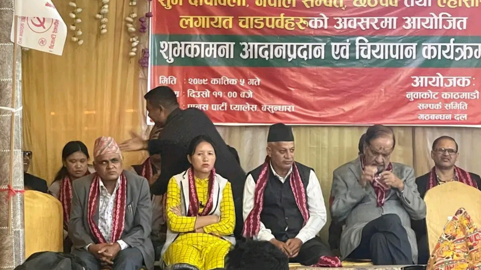काठमाडौं,कात्तिक ५ । पाँच दलीय गठबन्धन नुवाकोट- काठमाडौं सम्पर्क मञ्चको चियापान कार्यक्रम तथा शुभकामना आदानप्रदान कार्यक्रम काठमाडौमा सुरु भएको छ ।