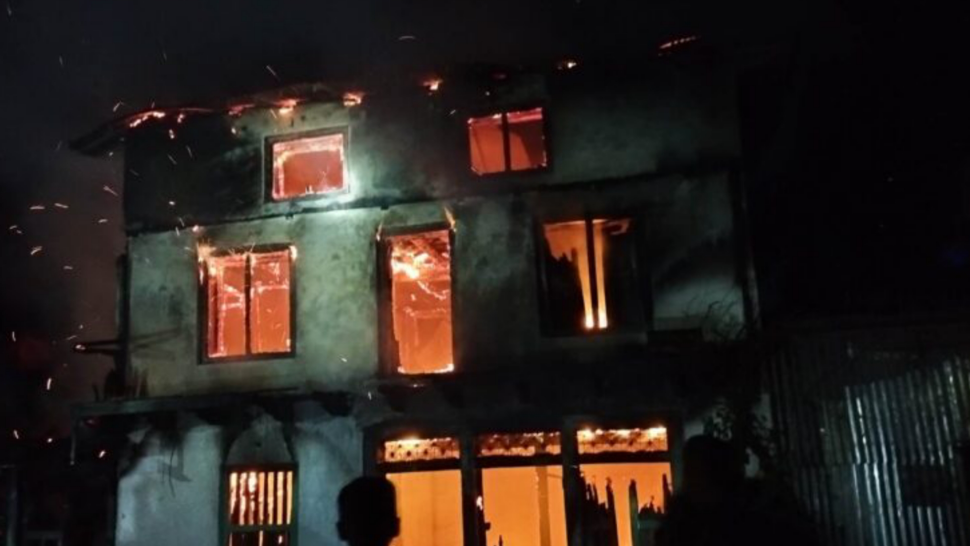 नुवाकोटको सत्तरीमा भीषण आगलागी, स्थानीय ब्यापारी थापाको घर जलेर नस्ट