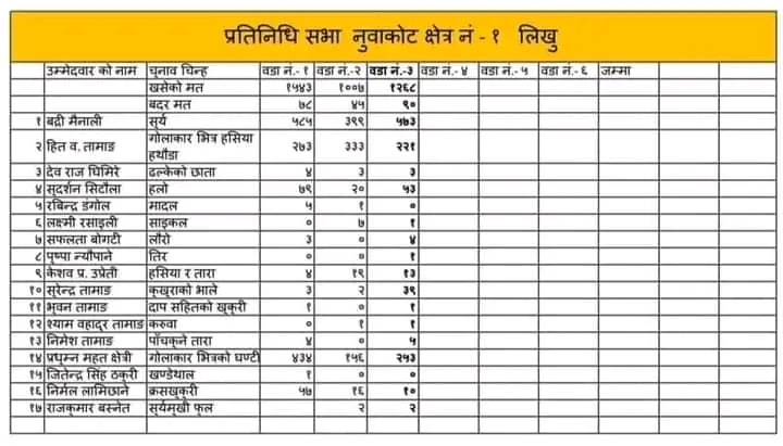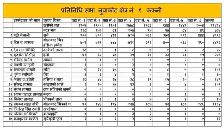 नुवाकोट क्षेत्र नम्बर १ मतगणना: ९२७ मतले बद्री मैनाली अगाडि