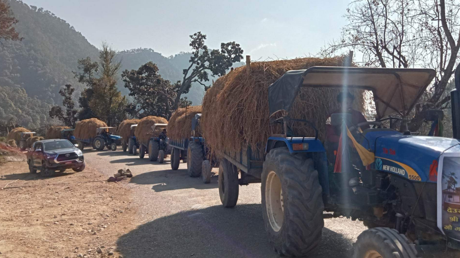 स्वर्गद्वारी आश्रमका गाईलाई युवा ब्यबसायीले दिए पराल
