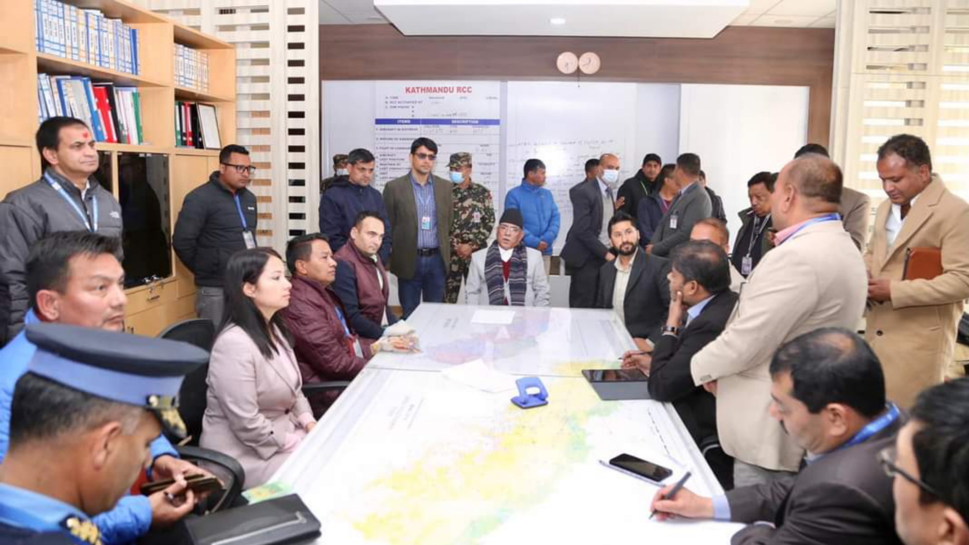 निरीक्षणमा प्रधानमन्त्रीका साथै उपप्रधान एवं गृहमन्त्री रवि लामिछाने लगायत सरकारी अधिकारीहरू छन् ।