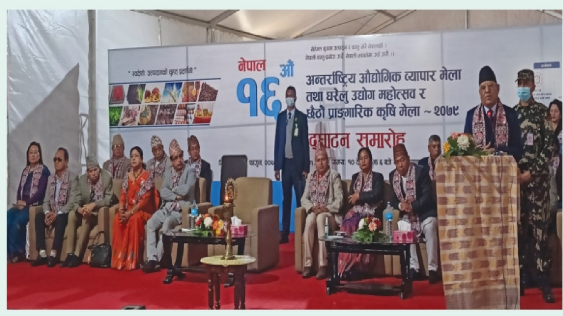 काठमाडौं,फागुन ३ । कोरोना महामारीका कारण ३ वर्षदेखि रोकिँदै आएको अन्तरराष्ट्रिय औद्योगिक व्यापार मेला काठमाडौंमा शुरू भएको छ । काठमाडौंको भृकुटीमण्डपमा आउँदो शनिवारसम्म सञ्चालन हुने ‘नेपाल १६औं अन्तरराष्ट्रिय औद्योगिक व्यापार मेला तथा घरेलु उद्योग महोत्सव र छैटौं प्रांगारिक कृषि मेला–२०७९’ मंगलवार प्रधानमन्त्री पुष्पकमल दाहाल उद्घाटन गरेका हुन् । नेपाल घरेलु तथा साना उद्योग महासंघ तथा केन्द्रीय महिला उद्यमी समितिको आयोजनामा भएको उक्त कार्यक्रममा प्रधानमन्त्री दाहालले घरेलु उत्पादन प्रवर्द्धन तथा संरक्षण गर्ने ऐनको अभाव रहेको बताएका छन् ।