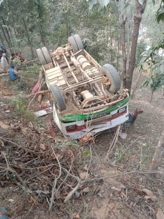 नुवाकोटको चैनपुरमा बस दुर्घटना, दुई जनाको घटनास्थलमै मृत्यु