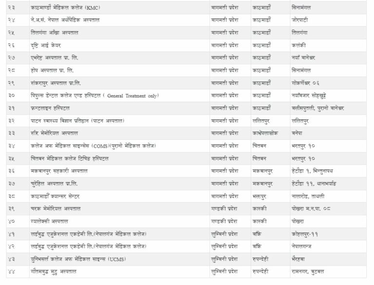 यी हुन् सामाजिक सुरक्षा कोषले सम्झौता गरेका अस्पतालहरू
