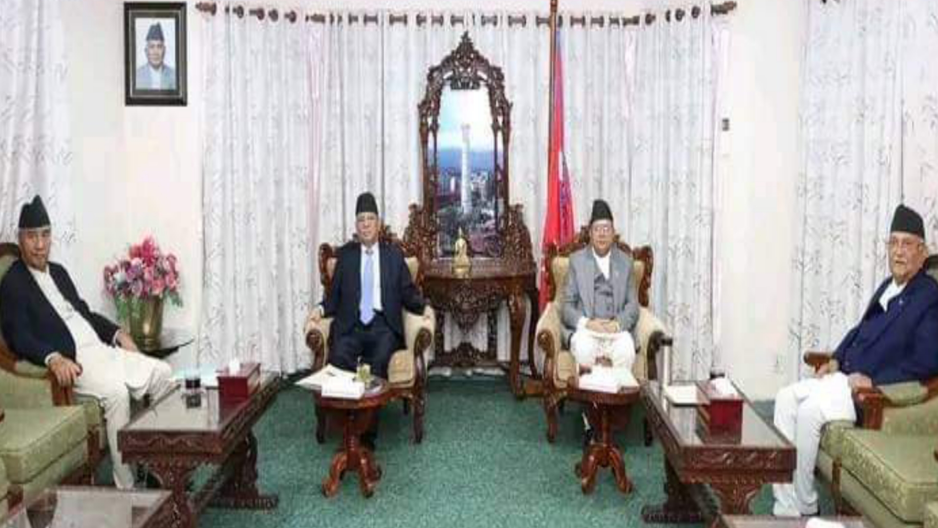 सिंहदरबारस्थित सभामुख देवराज घिमिरेको कार्यकक्षमा शनिबार प्रमुख तीन दलका अध्यक्षको बैठक बसेको थियो । सभामुख घिमिरेसहित बैठकमा प्रधानमन्त्री एवं नेपाल कम्युनिस्ट पार्टी (माओवादी केन्द्र)का अध्यक्ष पुष्पकमल दाहाल, नेपाली कांग्रेसका सभापति शेरबहादुर देउवा र प्रमुख प्रतिपक्षी दल नेपाल कम्युनिस्ट पार्टी (एमाले)का अध्यक्ष केपी शर्मा ओली सहभागी थिए ।