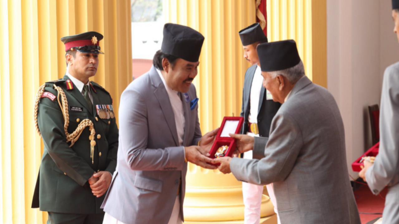 काठमाडौं,बैशाख १ । राष्ट्रपति रामचन्द्र पौडेलद्वारा विभिन्न क्षेत्रमा योगदान पुर्याएका व्यक्तिहरूलाई विभूषण प्रदान गरिएको छ ।