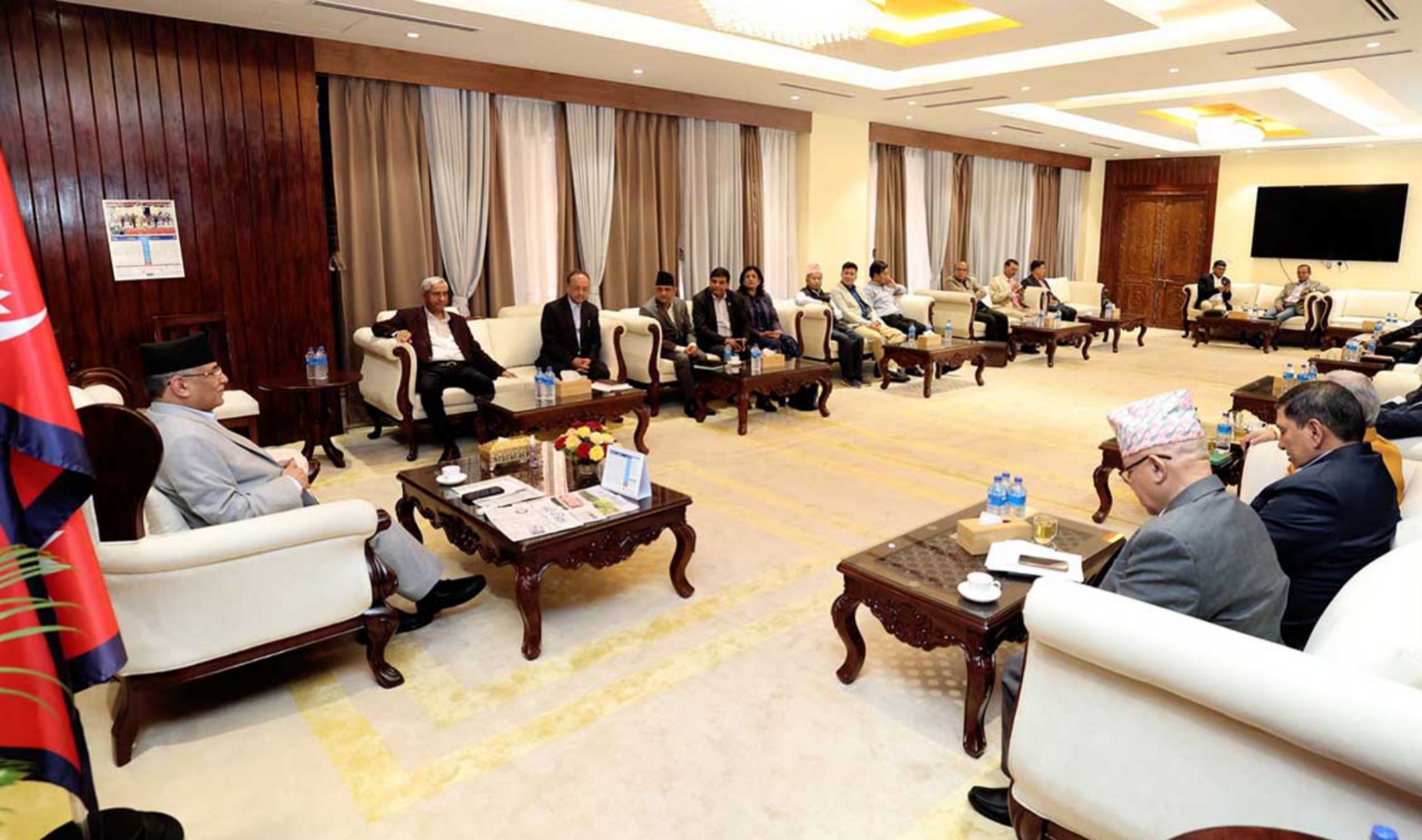 प्रधानमन्त्री पुष्पकमल दाहाल ‘प्रचण्ड’को निजी सचिवालयका अनुसार छलफलमा सत्ता गठबन्धनका शीर्ष नेतासँगै केही अधिवक्तासमेत सहभागी थिए ।