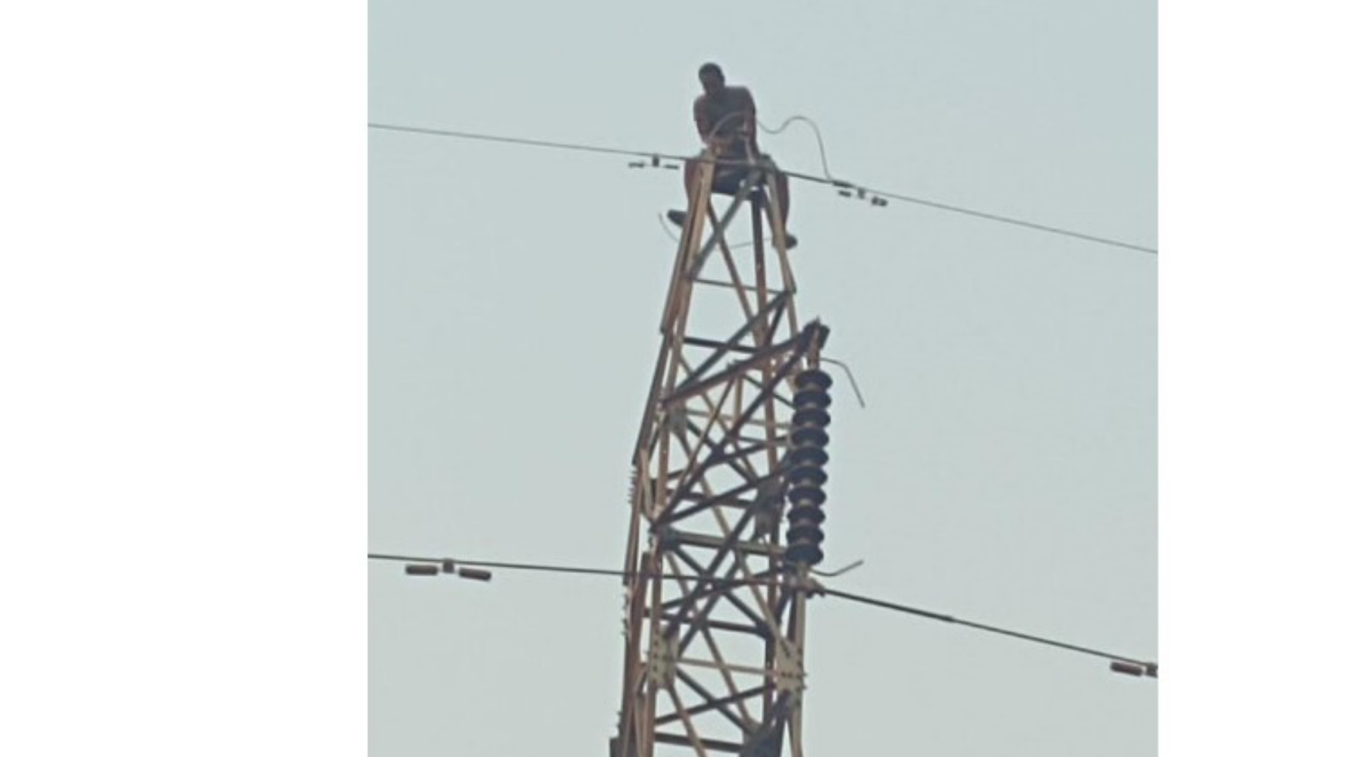 सडकको काम रोक्न माग गर्दै हाइटेन्सन पोलमा चढे युवक