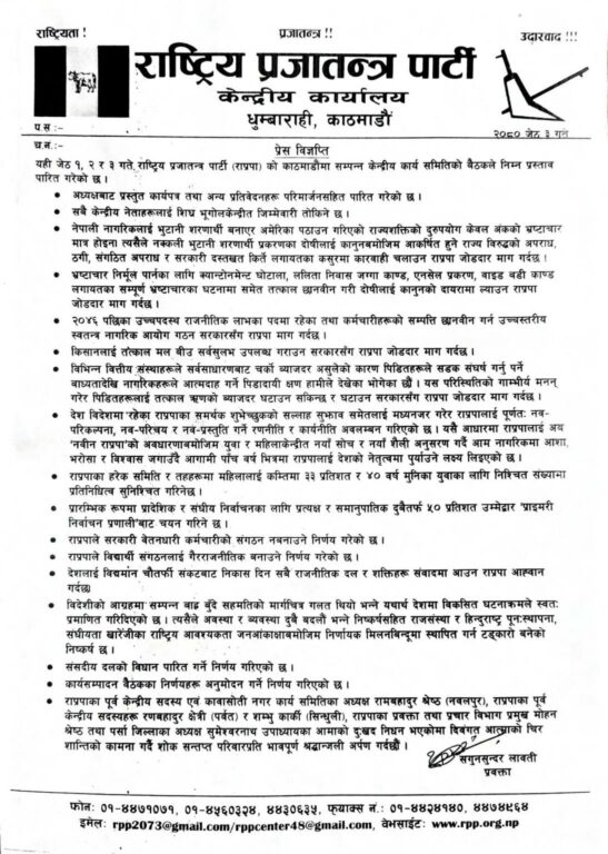 यस्ता छन् राप्रपा केन्द्रीय कमिटी बैठकका निर्णय