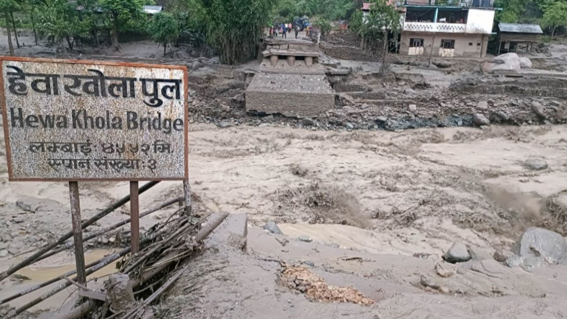 बाढीले बगाएको हेवा खोलामा बेलिब्रिज निर्माण गर्न अझै पन्ध्र दिन लाग्ने