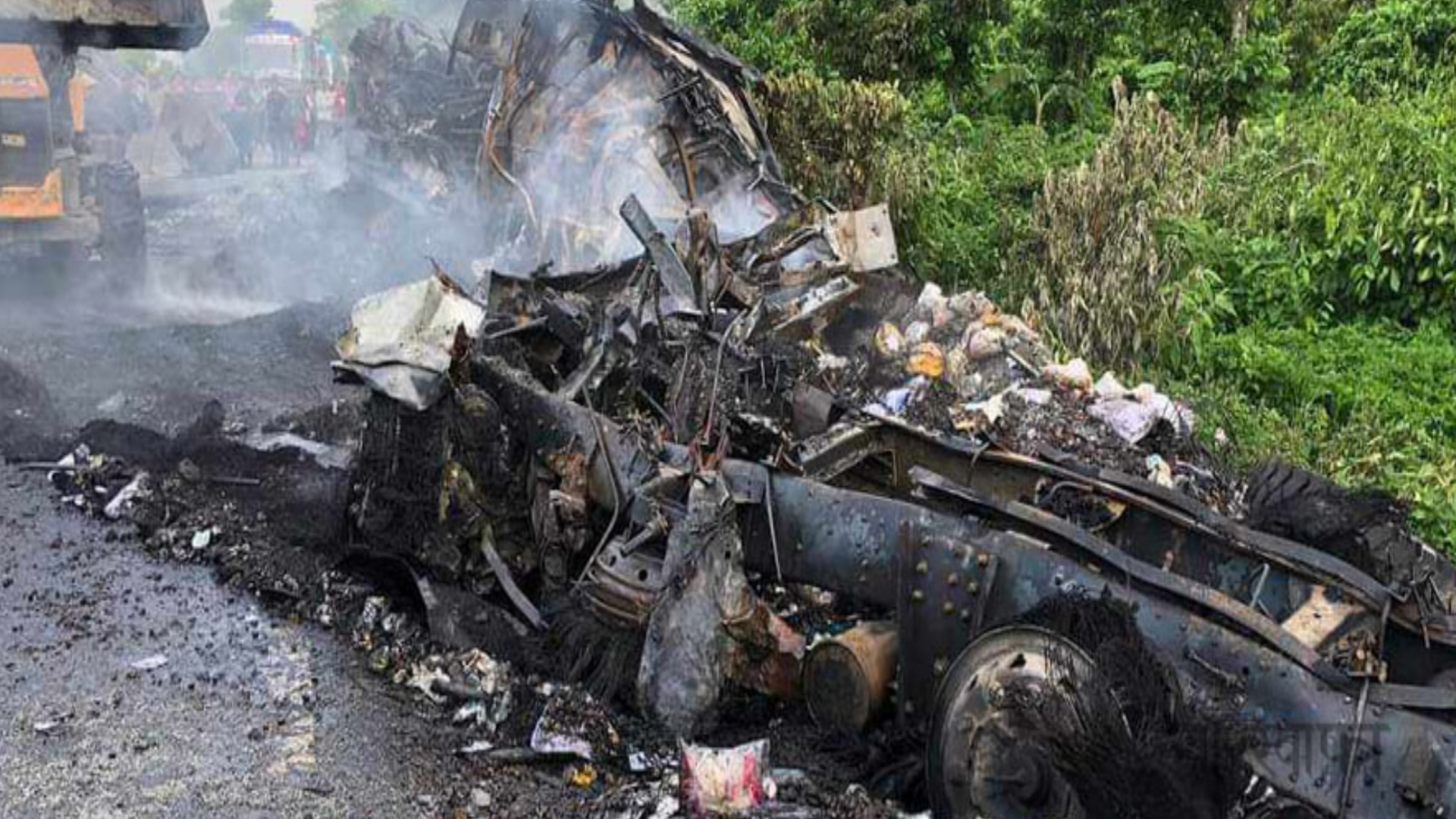हेटौँडाबाट चितवनतर्फ जाँदै गरेको ना ६ ख ६६६७ नं.को ट्रक र विपरीत दिशातर्फबाट आउँदै गरेको ना ६ ख ६३१ नं.को ट्रक शनिवार बिहान एक आपसमा ठक्कर खाई दुर्घटना हुँदा दुवै ट्रकमा आगलागी भएको हो ।
