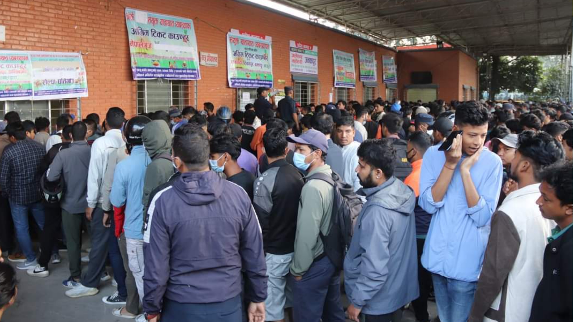 सरकारले दशैंमा घर फर्किने यात्रुहरूका लागि अग्रिम टिकट बुकिङ खुला गरेको हो । बसपार्कमा पुगेका यात्रुहरू लाइन बसेर टिकट बुकिङ गराइरहेका छन् । लाइनमा किशोर-किशोरीदेखि ज्येष्ठ नागरिकसम्म छन् ।