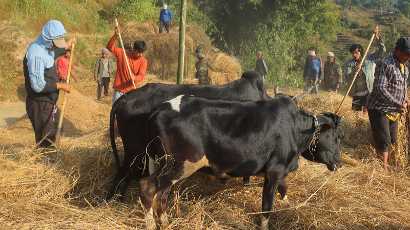 किमाथाङ्का,सङ्खुवासभा,पुस ८ । जिल्लाका किसान गोरु घुमाएर दाइँ लाउने, धान स्वाहार्ने चटारोमा छन् । किसानहरु एकापसमा धेरै मान्छे मिलेर दाइँ हाल्ने परम्परा भए पनि हिजोआज वीरलै त्यस्ता दृश्य देख्न पाइन्छ । सङ्खुवासभामा पछिल्लो समय गोरुको सहायताले गरिने दाइँ संस्कृति लोप हुन थालेको छ ।