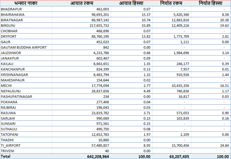 नेपालको अन्तर्राष्ट्रिय व्यापार: एक दर्जन भन्सारबाट शून्य निकासी, कुन नाकाबाट कति?