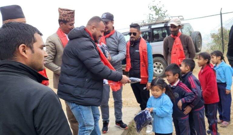 नुवाकोट शिवपुरीको ग्रामिणदेवी माध्यमिक विद्यालयका बालबालिकालाई न्यानो कपडा वितरण