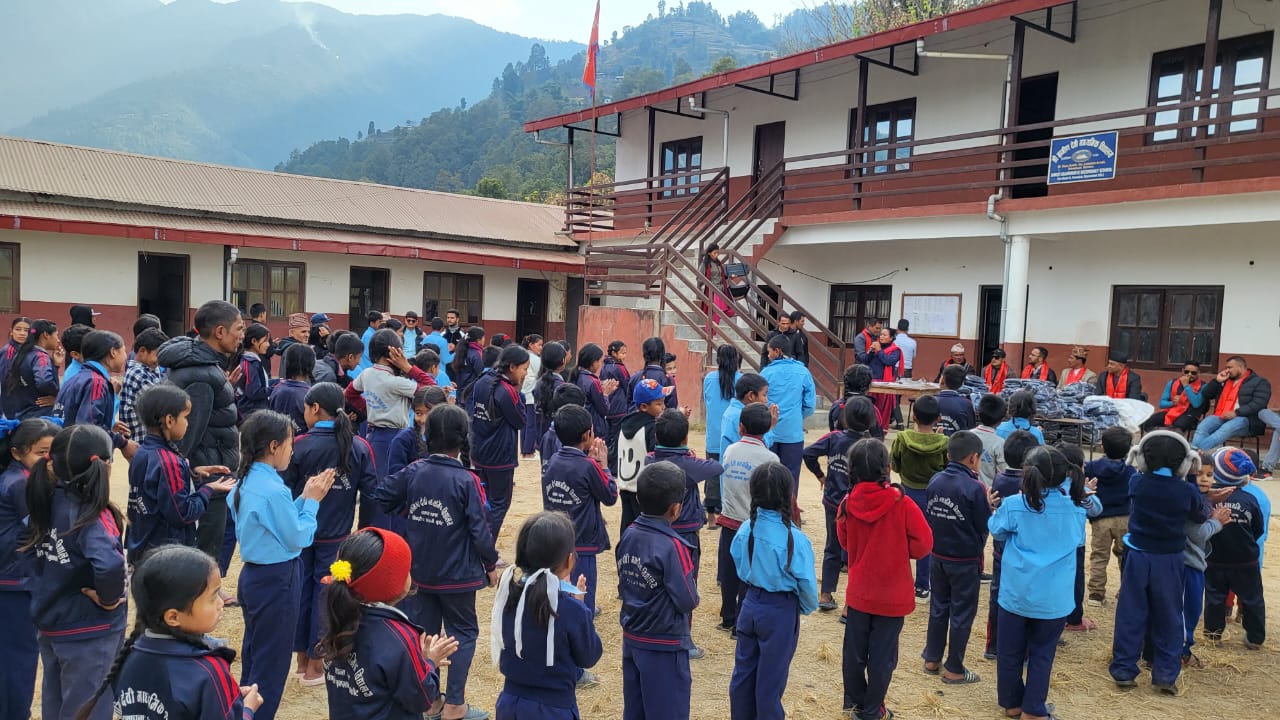 नुवाकोट शिवपुरीको ग्रामिणदेवी माध्यमिक विद्यालयका बालबालिकालाई न्यानो कपडा वितरण