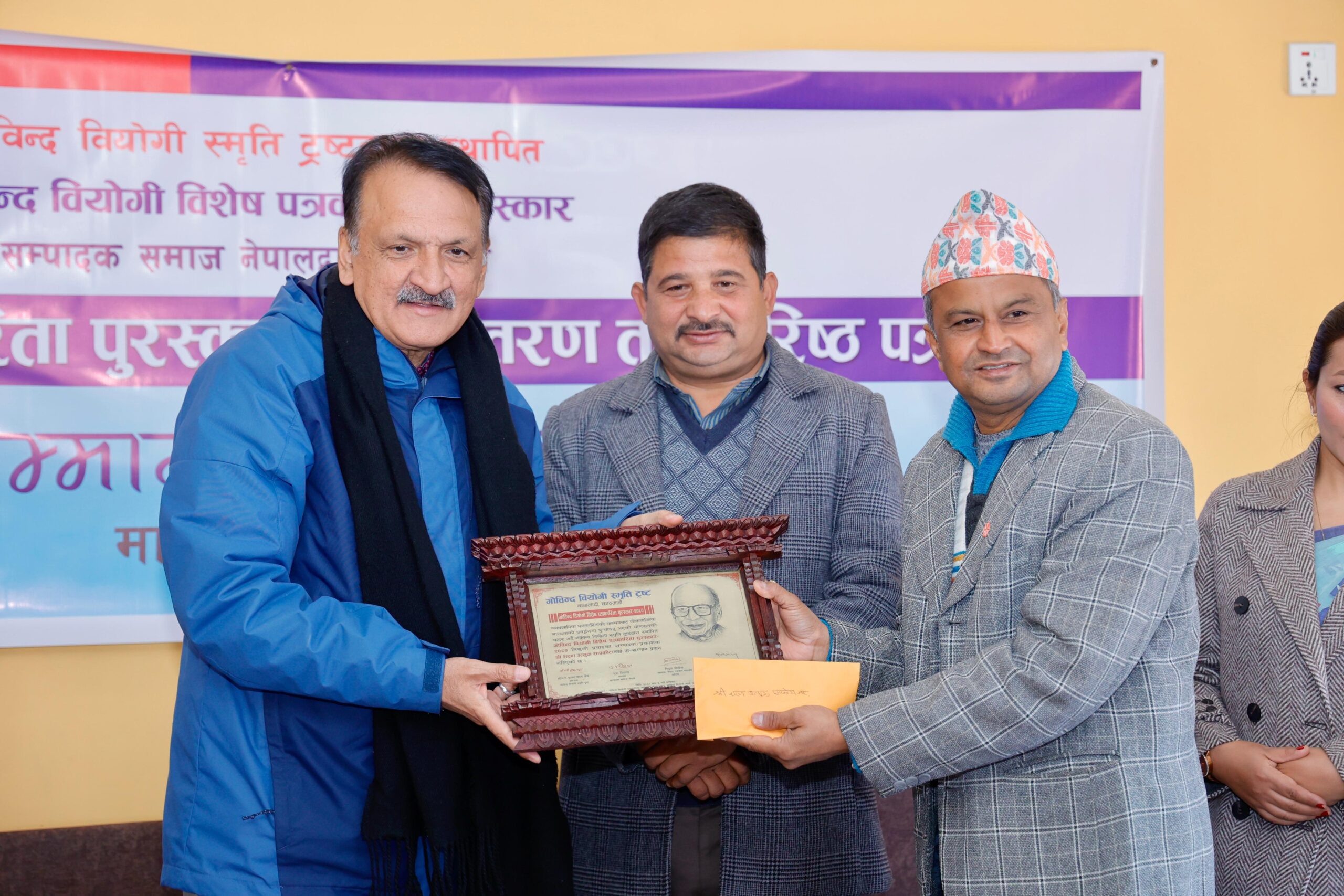 गोविन्द वियोगी पुरस्कारबाट नुवाकोटका पत्रकार सापकोटा सम्मानित
