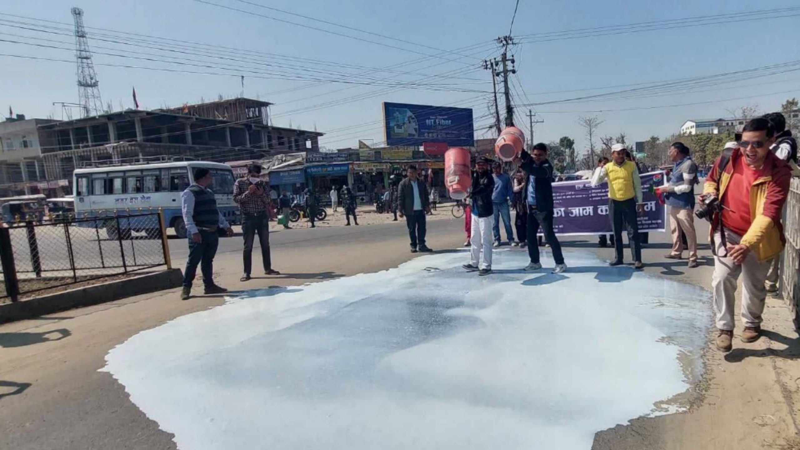 कैलालीको अत्तरियामा दूधको भुक्तानी नपाएको भन्दै बिहीवार सडकमा दूध पोखेर स्थानीयले विरोध गरेका हुन् ।
