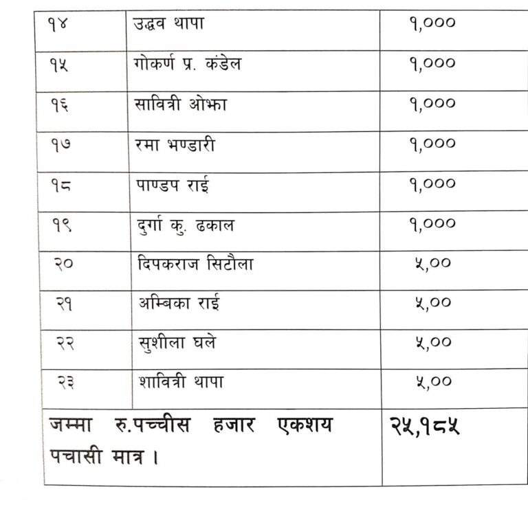 त्यस्तै विदुर नगरपालिका वडा नम्बर ४ बट्टारमा रहेको हार्डवयर पसल शुभलक्ष्मी इन्टरप्राइजेजले रु.२५ सय सहयोग गरेको छ । ब्लड क्यान्सर उपचारका लागि धेरै खर्च भैसकेको र थप धेरै खर्च लाग्ने भएकाले सबैले सहयोग गरि साबित्रीमाया डङोलको जीवन रक्षाका लागि परिवारजनले आग्रह गरेका छन् ।