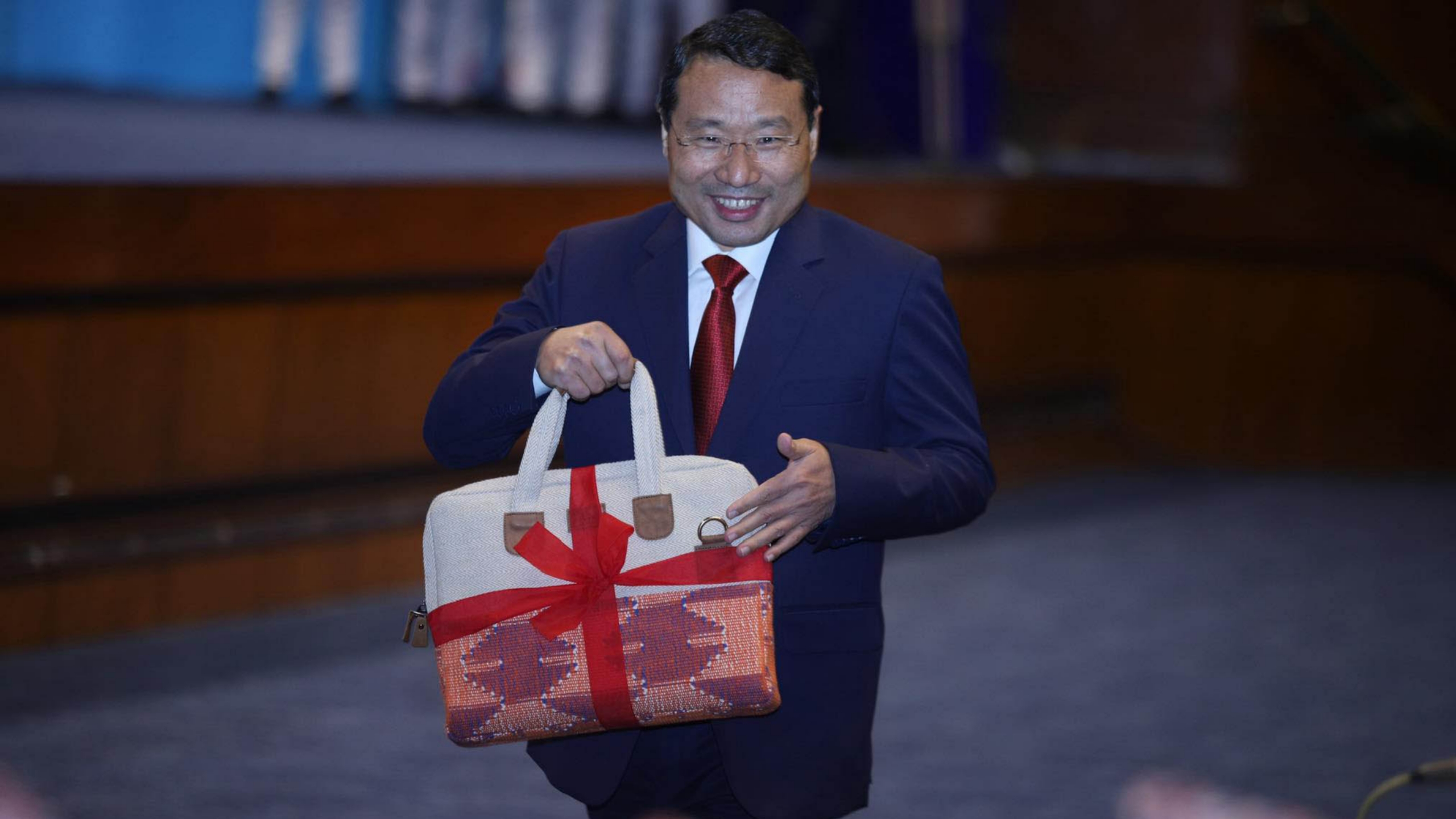 काठमाडौं,जेठ १६ । आगामी आर्थिक वर्षको बजेट प्रस्तुत गर्न सङ्घीय संसद् सचिवालय नयाँबानेश्वर पुगेका अर्थमन्त्री वर्षमान पुनले बजेट वक्तव्य पुस्तिका राख्न प्रयोग गरेको झोलाले धेरैको ध्यान खिच्यो । यसअघिका अर्थमन्त्रीले विदेशमा प्रचलनमा रहेको ‘ब्रिफकेस’ मा बजेट वक्तव्य राखेर लैजाने गरेकामा यस पटक अर्थमन्त्री पुनले नेपाली झोलाको प्रयोग गरे ।