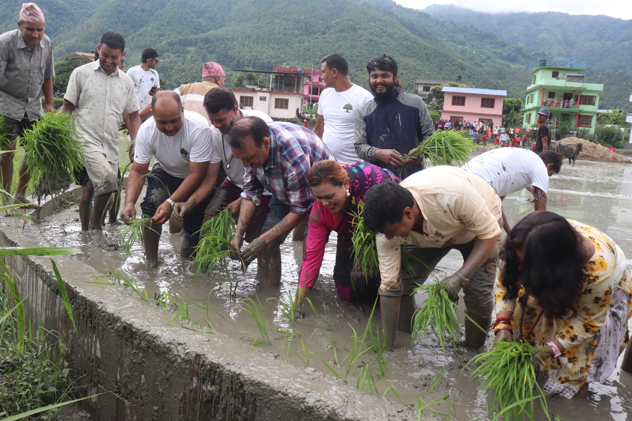 धान दिवसमा नुवाकोट पुगेर डाक्टर महतले रोपे छुपुछुपु धान