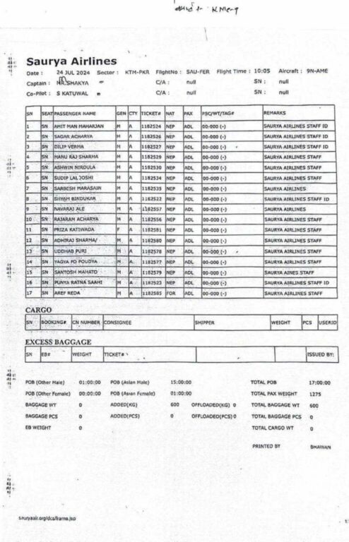 सौर्य एअरलाइन्स विमानमा दुर्घटना: जहाजमा सवार १९ जना को-को थिए ?