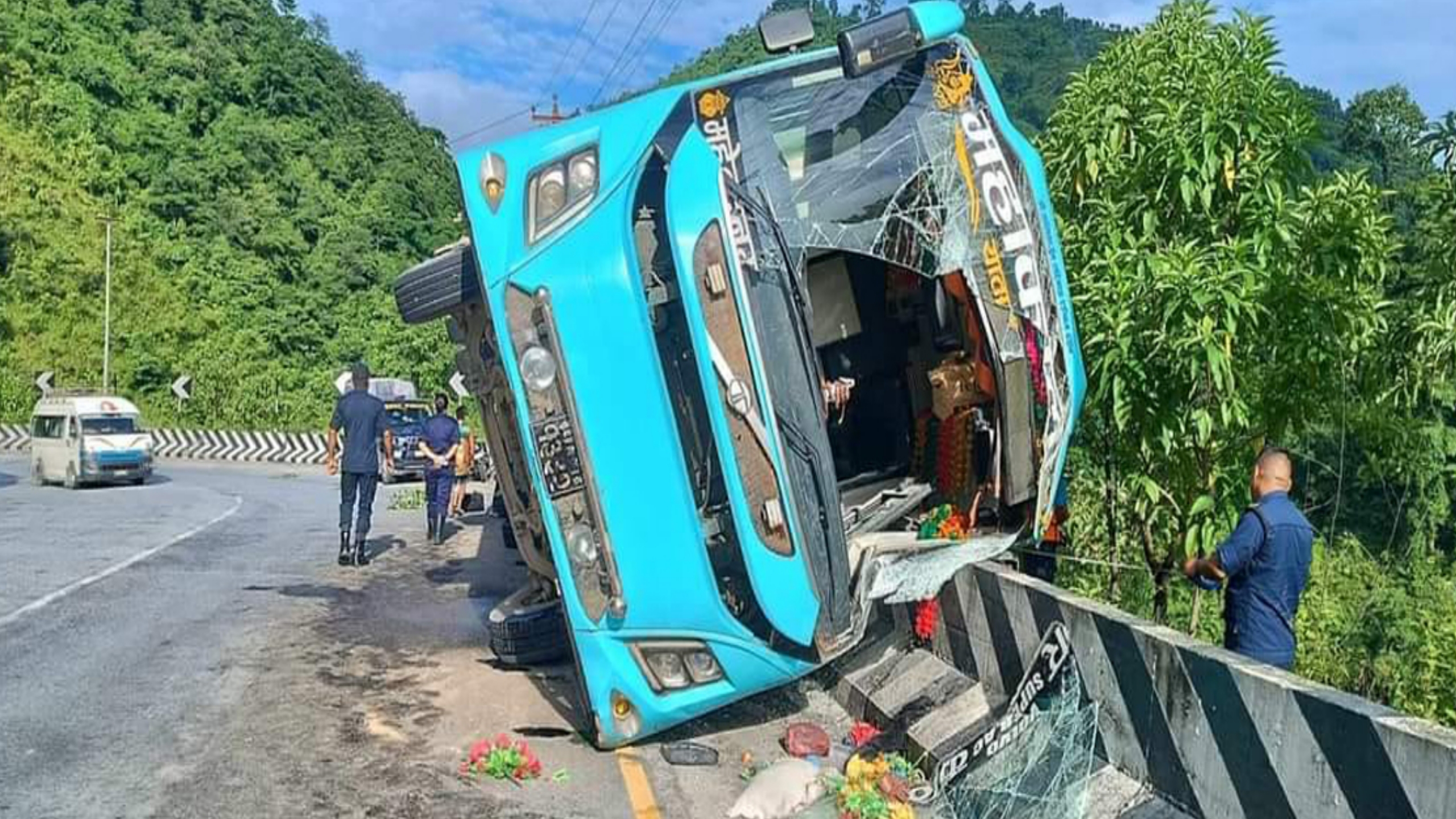 महेन्द्रनगरबाट काठमाडौँतर्फ जाँदै गरेको सुदूरपश्चिम प्रदेश ०२–००१ ख १३३२ नम्बरको बस दुर्घटना हुँदा उनीहरु घाइते भएका हुन् । घाइतेमध्ये दुई जनाको अवस्था गम्भीर रहेको जिल्ला प्रहरी कार्यालयका प्रहरी नायब उपरीक्षक भेषराज रिजालले जानकारी दिए । घाइते सबैको चितवन मेडिकल कलेजमा उपचार भइरहेको छ ।
