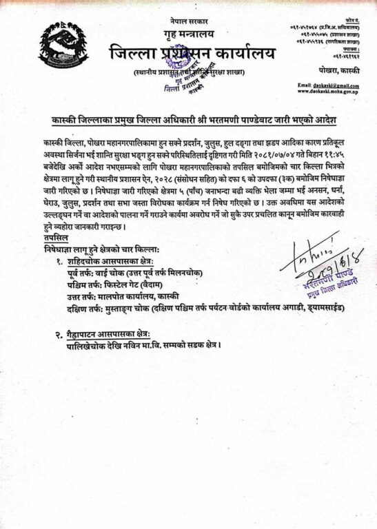कास्कीको विभिन्न स्थानमा निषेधित क्षेत्र घोषणा