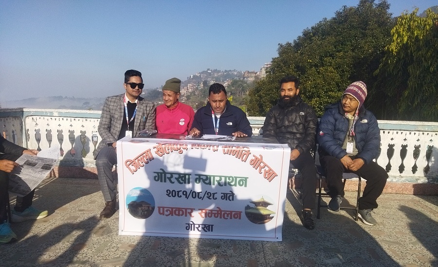 जिल्ला खेलकुद विकास समिति गोरखाले गोरखा सदरमुकाममा शुक्रबार पत्रकार सम्मेलन गर्दै झण्डै ४२ किलोमिटर म्याराथनमा देशभरिबाट म्याराथन धावकहरु २२५ जना सहभागिता जनाउने जिल्ला खेलकुद विकास समितिका अध्यक्ष शान्तसिंह बस्नेतले जानकारी दिए ।