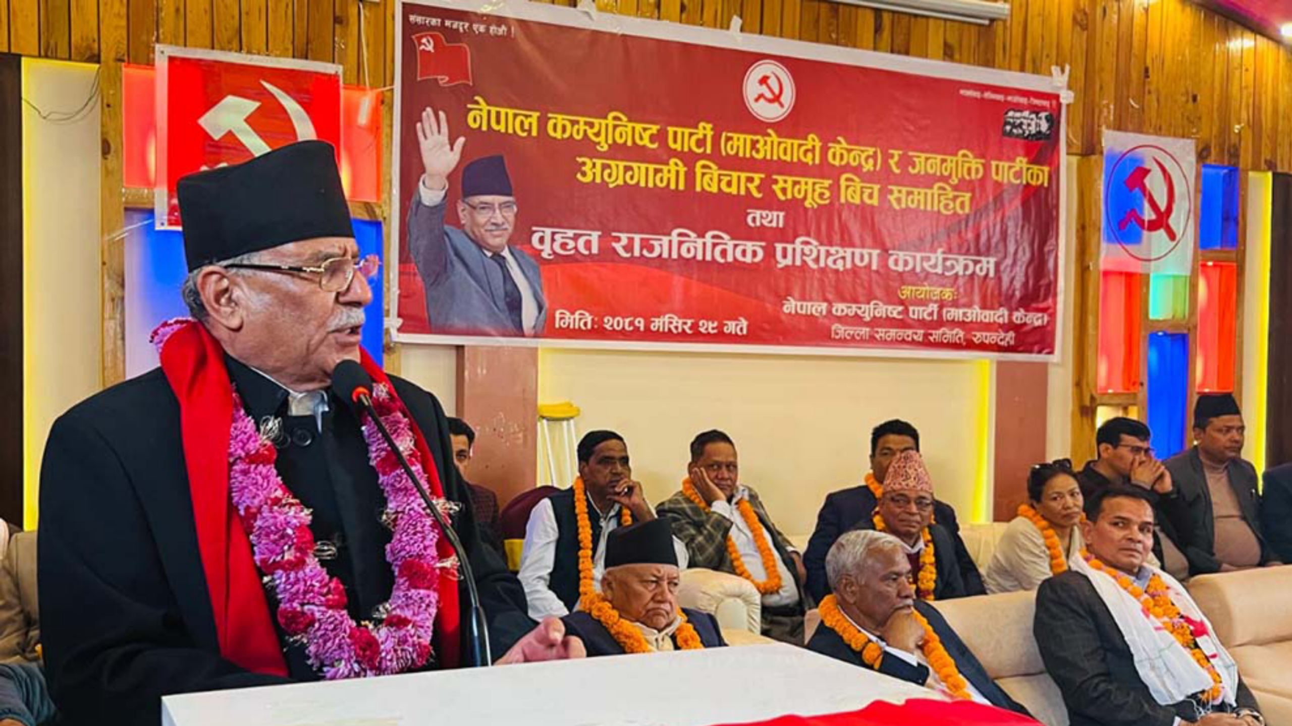 काठमाडौ,मंसिर २९ । नेकपा (माओवादी केन्द्र) का अध्यक्ष पुष्पकमल दाहाल ‘प्रचण्ड’ले माओवादी केन्द्र अब २०६४ सालको जस्तै पहिलो शक्ति बनेर आउने दाबी गरेका छन् । दुई पार्टी एकता तथा प्रशिक्षण कार्यक्रमलाई शनिबार रुपन्देहीको तिलोत्तमामा सम्बोधन गर्दै प्रचण्डले माओवादी केन्द्र सिद्धियो भन्नेलाई आगामी निर्वाचनबाट ०६४ कै अवस्थामा पुर्याएर देखाइदिने उद्घोष गरे ।