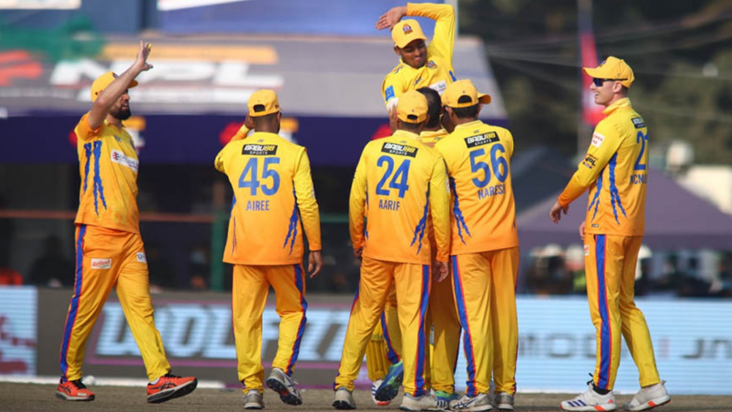 यस्तै शुभ कंशाकरले २६, ओपनर लाहिरु मिलान्था र हर्ष थाकरले १२/१२ र कप्तान आशिफ शेख र अरनिको यादवले ११/११ रन बनाए ।