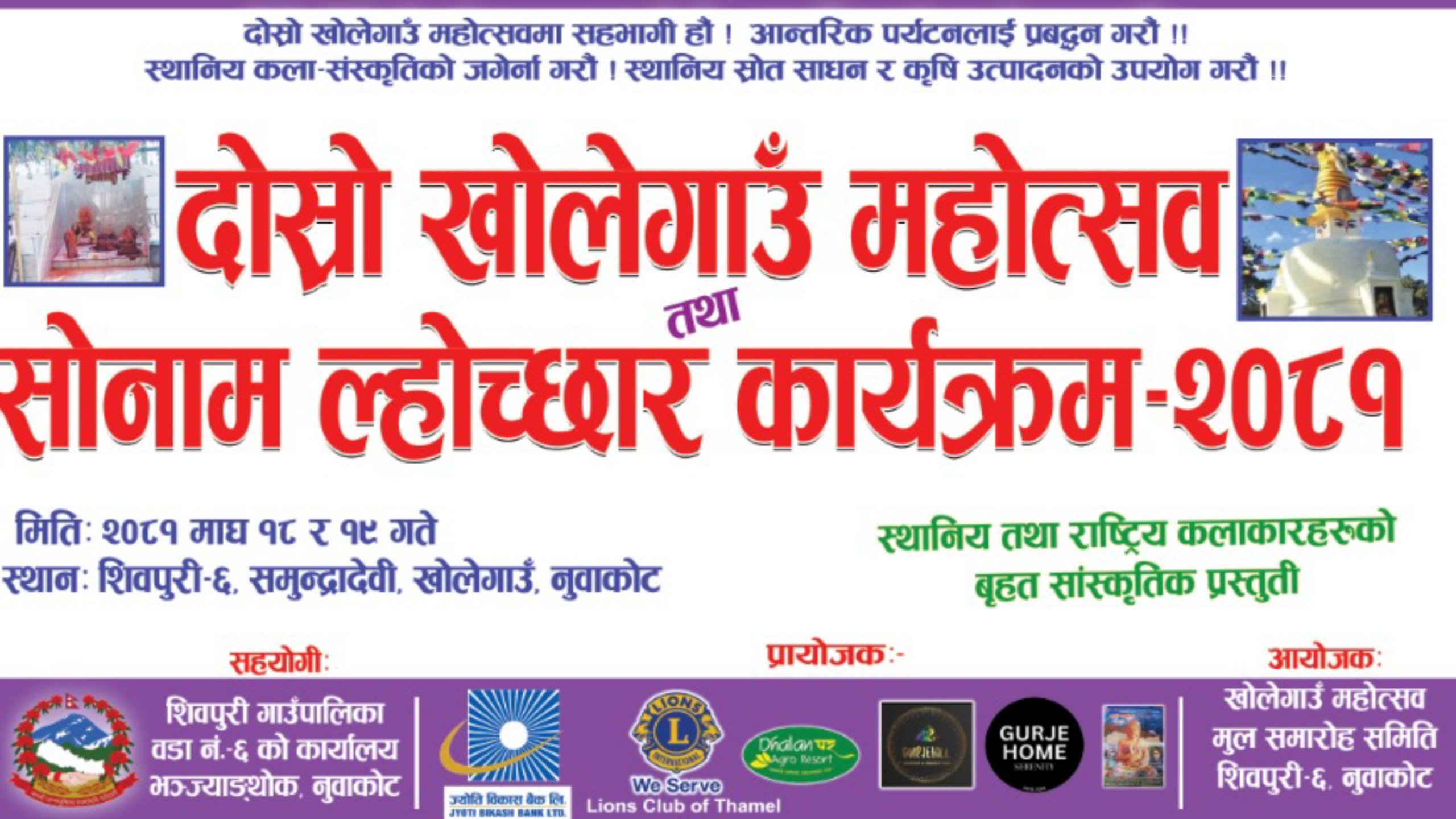 आजदेखि नुवाकोट शिवपुरीमा ‘खोलेगाउँ महोत्सव’ तथा ‘सोनाम ल्होछार’ विशेष कार्यक्रम