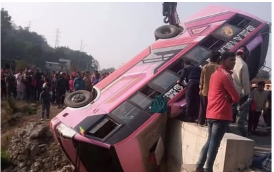बस दुर्घटनामा एकको मृत्यु, १३ जना घाइते
