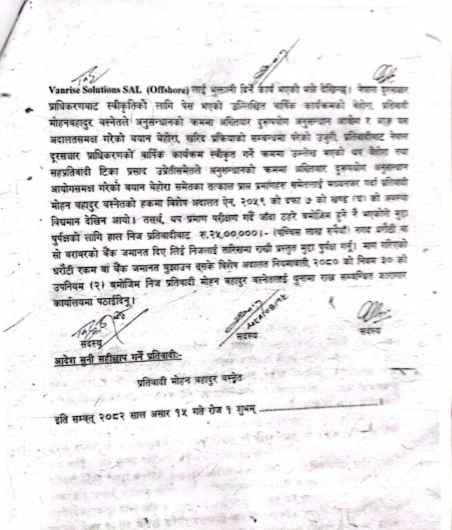 विशेष अदालतका न्यायाधीश तेज नारायण सिंह राई, राम बहादुर थापा र विदुर काेइरालाकाे इजलासले बस्नेतविरुद्ध उक्त धराैटी मागकाे आदेश गरेको हो ।