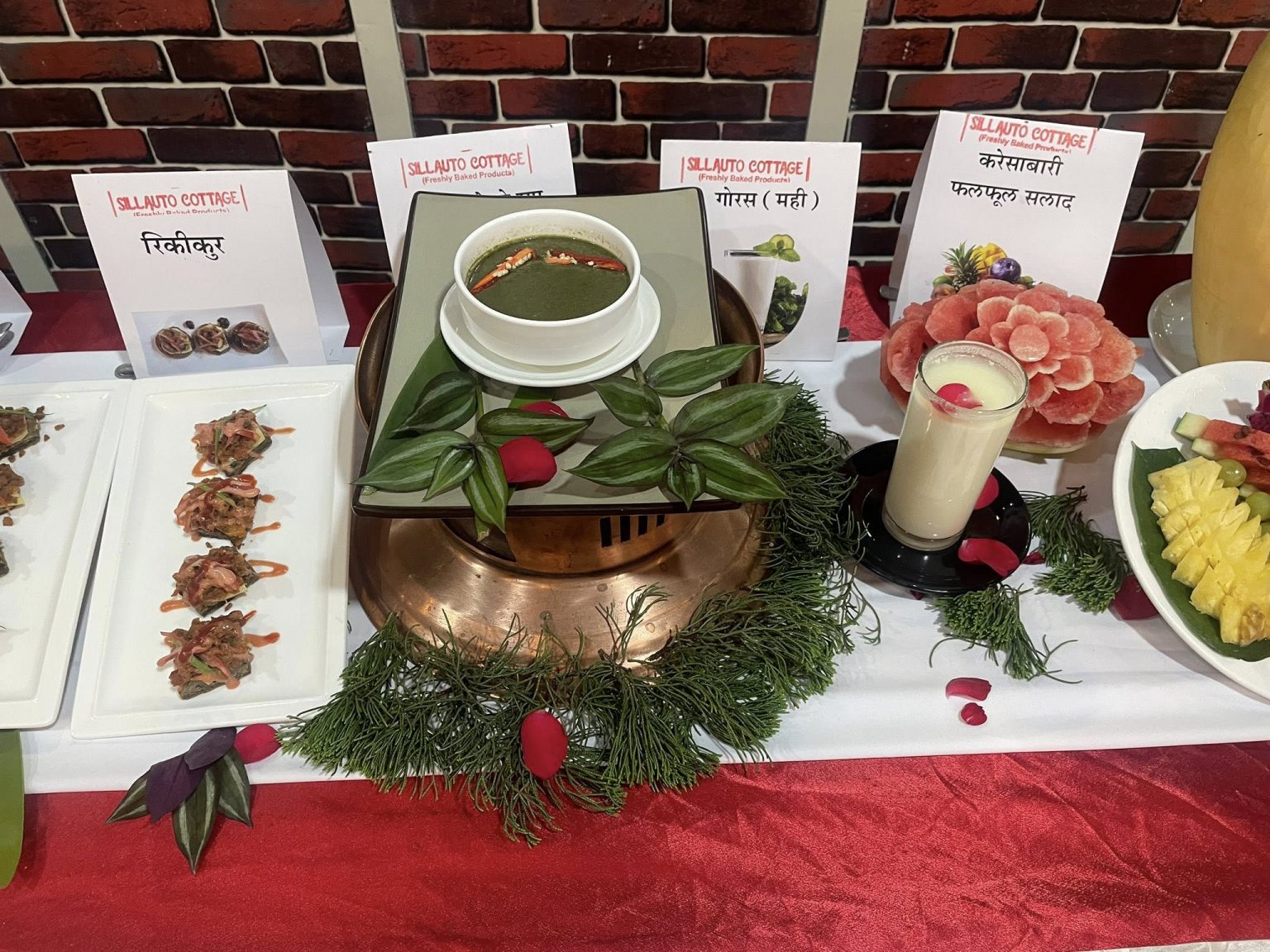 मार्सी भात र कड्कनाथ करी, च्याँख्ला, डिँडोसँग खसीको करङ, नङ्ग्रे सपेटो, इन्द्रेणी मोमो, हाँसको छोइला, रिकीकुर, कन्चेम्वा, गोरस (मही), दही फ्रुट र चिउरा, करेसाबारी फलफूल सलादको प्रदर्शनी आकर्षक र रुचिकर थियो ।