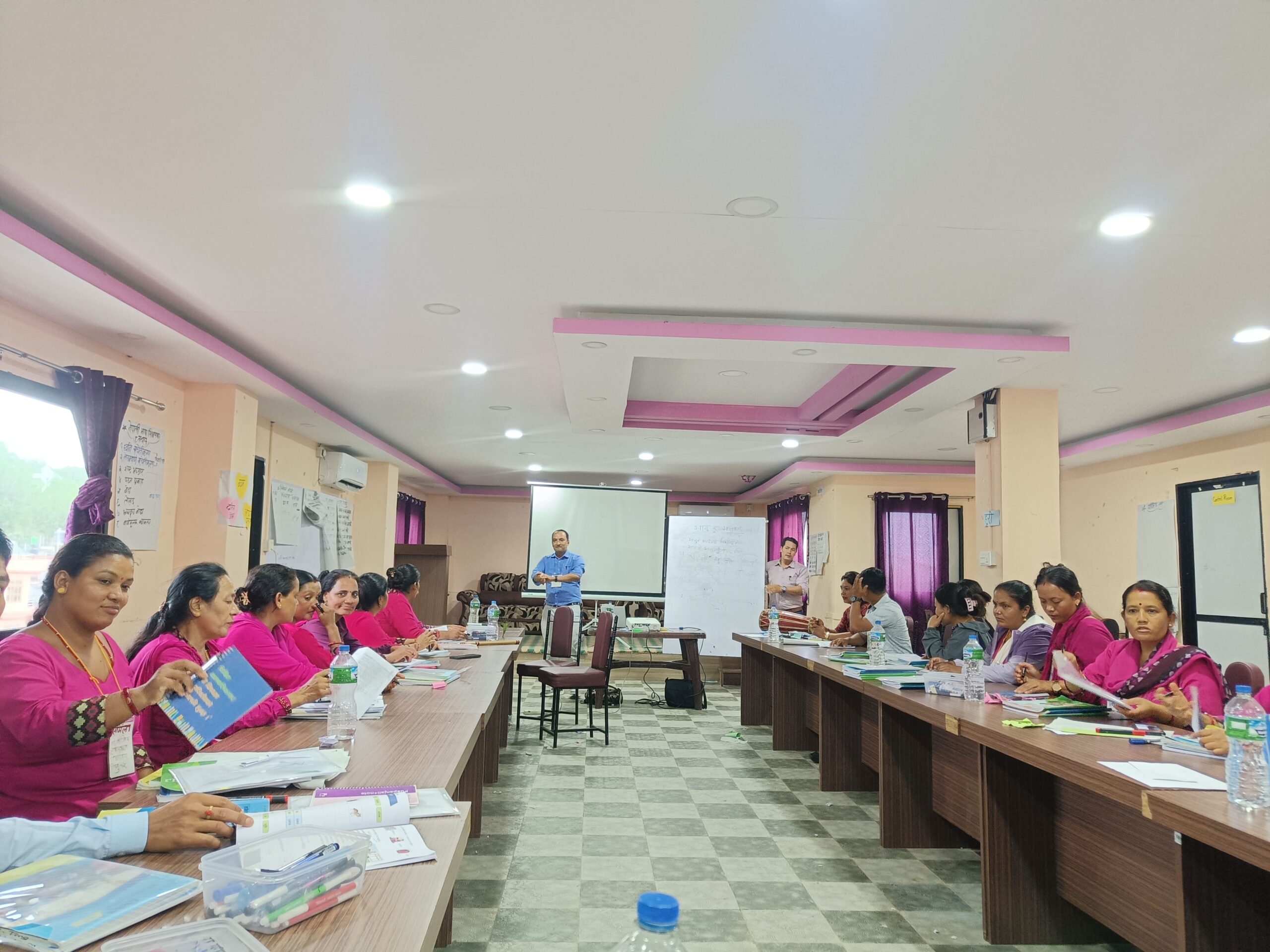 तालिममा नेपाली भाषा विषयको शिक्षण प्रक्रियालाई अझ प्रभावकारी बनाउन नमूना अभ्यास, कक्षा व्यवस्थापन, पाठ योजनाको विकास र शिक्षणमा देखिने समस्या समाधानबारे पुनर्ताजगी प्रशिक्षण दिइएको छ ।