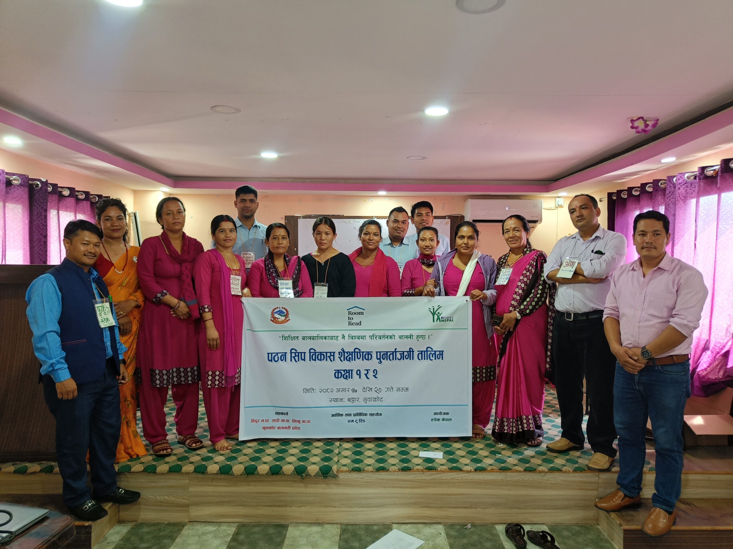 बट्टारमा आयोजित चार दिने साक्षरता तालिममा विदुर, लिखु र तादी गाउँपालिकाका २५ जना शिक्षक सहभागीथिए । तालिममा कक्षा १ र २ का शिक्षकहरूलाई लक्षित गर्दै नेपाली भाषा शिक्षणलाई प्रभावकारी बनाउन कक्षा व्यवस्थापन, पाठ योजना निर्माण, शैक्षिक सामग्रीको प्रयोग, सिकाइ चुनौती समाधानजस्ता व्यवहारिक पक्षमा सघन अभ्यास र प्रशिक्षण दिइएको थियोे । तालिम रुम टु रिडका वरिष्ठ प्रशिक्षक ओमकुमार श्रेष्ठ र रुडेक नेपालका फुर्कु घलेले प्रशिक्षण दिएका थिए भने थप सहजीकरण संस्थाका सिर्जना खड्का र प्रशान्त तामाङले गरेका थिए।