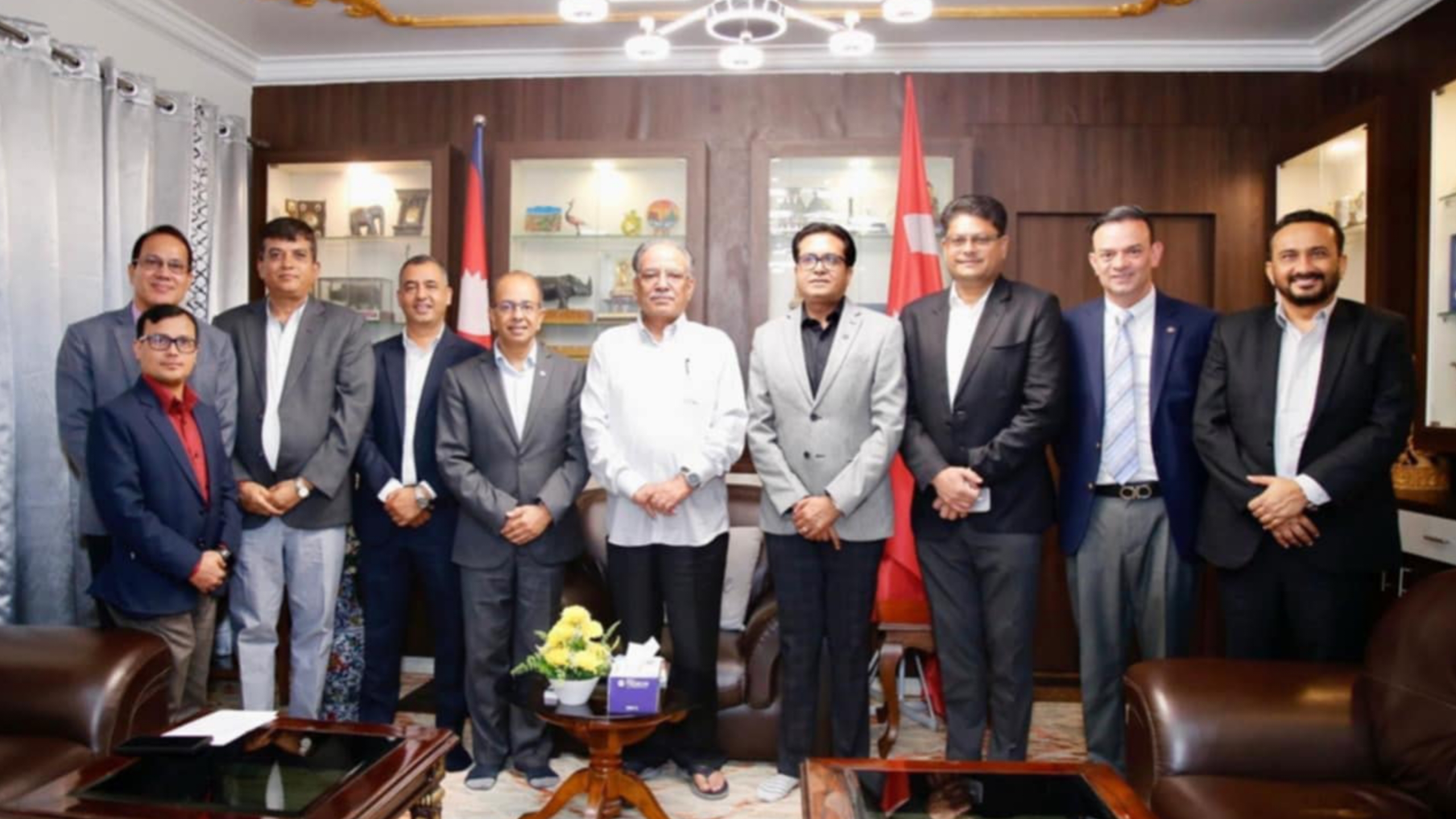 सोमबार खुमलटारस्थित आफ्नै निवासमा नेपाल उद्योग परिसंघ (सिएनआइ) का नवनिर्वाचित पदाधिकारीहरूसँगको भेटमा अध्यक्ष प्रचण्डले वर्तमान अवस्थामा राज्यले निजी क्षेत्रलाई सहज वातावरण बनाउनुपर्नेमा जोड दिए।