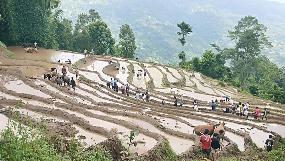 हिले,साउन १७ । धनकुटाको महालक्ष्मी नगरपालिका–२ का यत्नबहादुर कटुवालले बेठी परम्परा पुनः सुरु गर्दै आफ्नो २५ रोपनी खेतमा एकै दिन धान रोपाइँ गरेका छन्। लोप हुँदै गएको बेठी प्रथाले गाउँमा उत्साह ल्याएको छ। गाउँलेहरू गोरु, रोपाहार, बाउसेसहित भेला भएर नौमती बाजा र असारे भाकासँगै रोपाइँमा सहभागि भए।