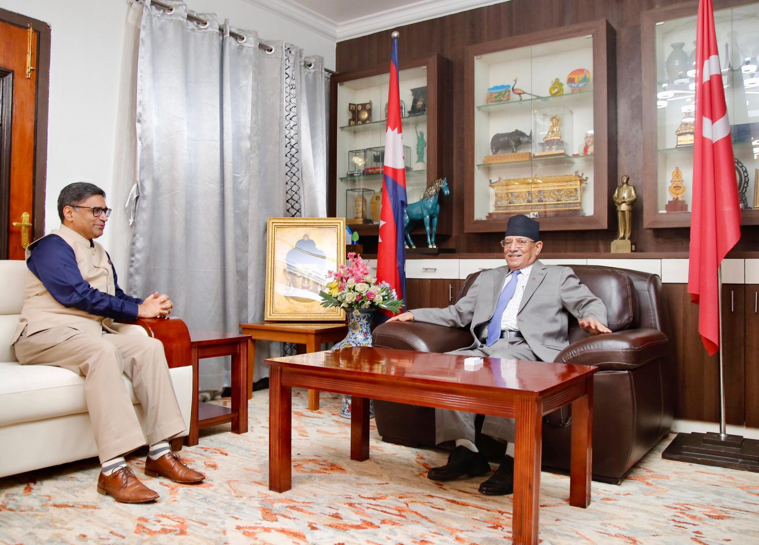 माओवादी अध्यक्ष दाहालसँग भारतीय विदेशसचिव मिस्रीको शिष्टाचार भेट