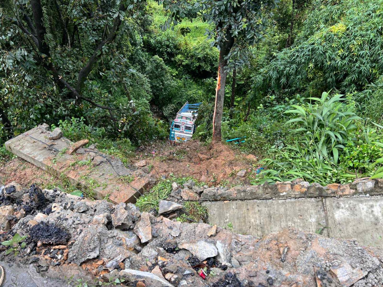 दुर्घटनामा मोटर साइकललाई ठक्कर दिने भारतीय ट्रक अनियन्त्रित भएर सडकबाट अन्दाजी २५ मिटर तल खसेको छ । ट्रकमा चार जना सवार रहेको प्रहरीले जनाएको छ । चारै जना भारतीय नागरिक हुन् ।