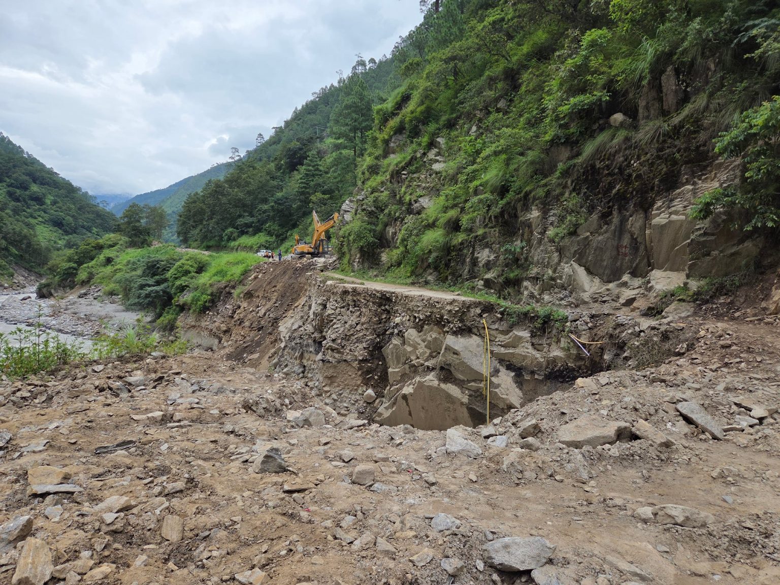 चीन तर्फ बाट लेन्देखोलामा आएको बाढीले कटान गरी बिगारेको यो सडक पुनर्निर्माण सम्पन्न गर्न अझै एक साता बढी लाग्ने देखिएको छ । टिमुरे,तातोपानी डाँडा,फ्याङलुङ र लिङलिङ चार स्थानमा नदीले कटान गरेको भागहरू निमार्ण भए पनि गोसाईंकुण्ड गाउँपालिका तीन स्थित मेदाङपुदुङमा भने अलिक जटिल भएकाले बढी समय लागेको गल्छी,त्रिशूली,मैलुङ,स्याफ्रुबेंसी–रसुवागढी सडक आयोजनाका इन्जिनियर रूपनारायण पौडेलले बताए ।