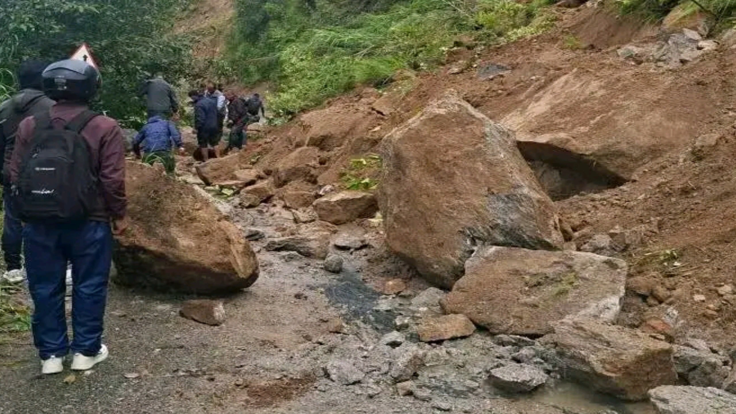 गुर्जे-खोलेगाउँ सडकखण्डमा सुख्खा पहिरो: अवरुद्ध सडक ७ घण्टापछि सञ्चालन