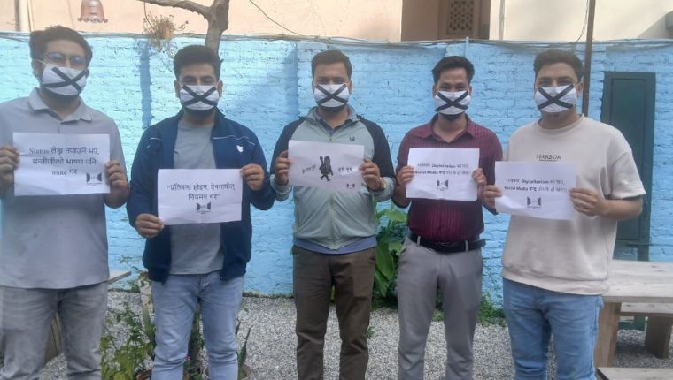प्रदर्शनमा सहभागीहरूले मुखमा मास्कसहित कालो टेप लगाएका थिए। साथै, ‘स्टाटस लेख्न नपाउने भए मन्त्रीजीको भाषण पनि म्युट गर’, ‘प्रतिबन्ध होइन, ऐनमार्फत नियमन गर’, ‘भाषणमा डिजिटाइजेसनको नारा, सोसल मिडिया बन्द गरेर के हो पारा’ भन्ने नारा अंकित पम्प्लेट बोकेर विरोध जनाएका थिए।
