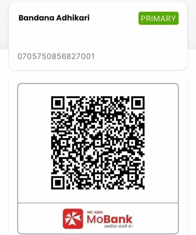 बन्दना अधिकारीको उपचारका लागि सहयोग गर्न इच्छुक शुभचिन्तकहरूले तलको क्युआर मार्फत आर्थिक सहयोग गर्न सकिने परिवारले जनाएको छ।