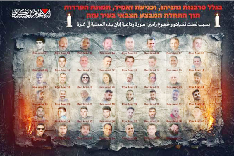 हमासले तस्वीर सार्वजनिक गर्दै इजरायली प्रधानमन्त्री बेन्जामिन नेतान्याहूको जिद्दीपन र सेनाप्रमुख इयाल जमिरको गाजा अधीनमा राख्ने रणनीतिका कारण बन्धकहरूको जीवन खतरा बढेको आरोप लगाएको छ।