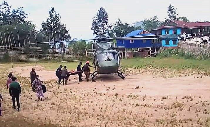 व्यथाले छट्पाइरहेकी महिलाको हेलिकोप्टरमार्फत उद्वार
